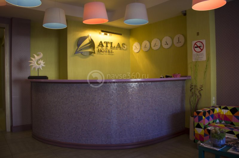 Добро пожаловать в новый и современный отель «Атлас», который находится в Октябрьском районе города Иркутска. Гостиница расположилась в пятиэтажном здании, в центре Иркутска, недалеко от аэропорта и автовокзала, с собственной одноименной кофейней и с охраняемой парковкой. Дизайн ресепшна и кофейни напоминает свежесобранные весенние цветы — яркие и сочные и в тоже время нежные и ненавязчивые тона. Отель «Атлас» включает в себя 28 номеров категории стандарт, студия и люкс. Номера Standart делятся на три вида, в зависимости от площади и спального места:
